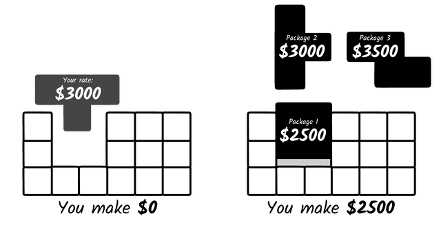 Moving forward, whenever a brand asks how much you charge for a specific set of deliverables, send them multiple packages instead.